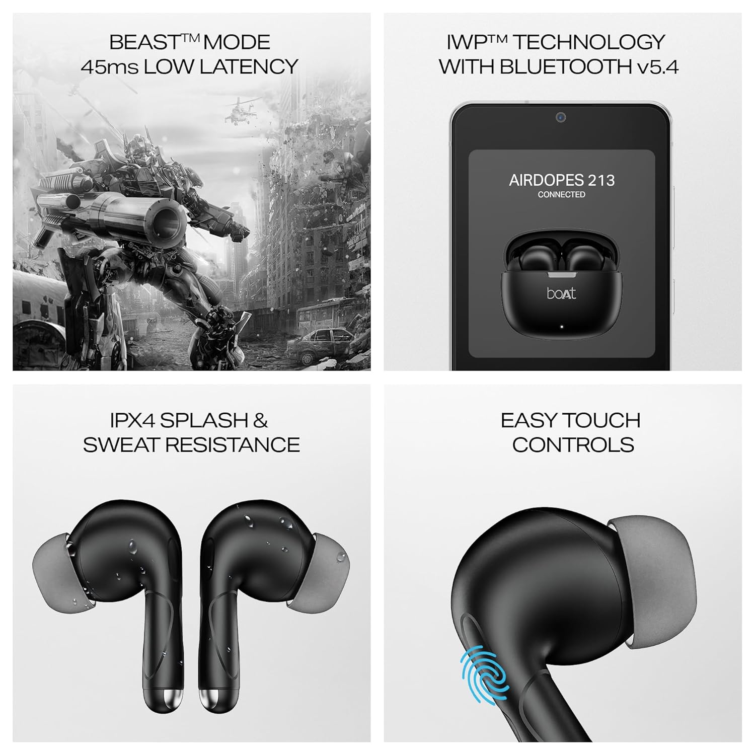 Boat Airdopes 213, 50H Battery, ENx Tech, Beast Mode, ASAP Charge, Bluetooth Earbuds