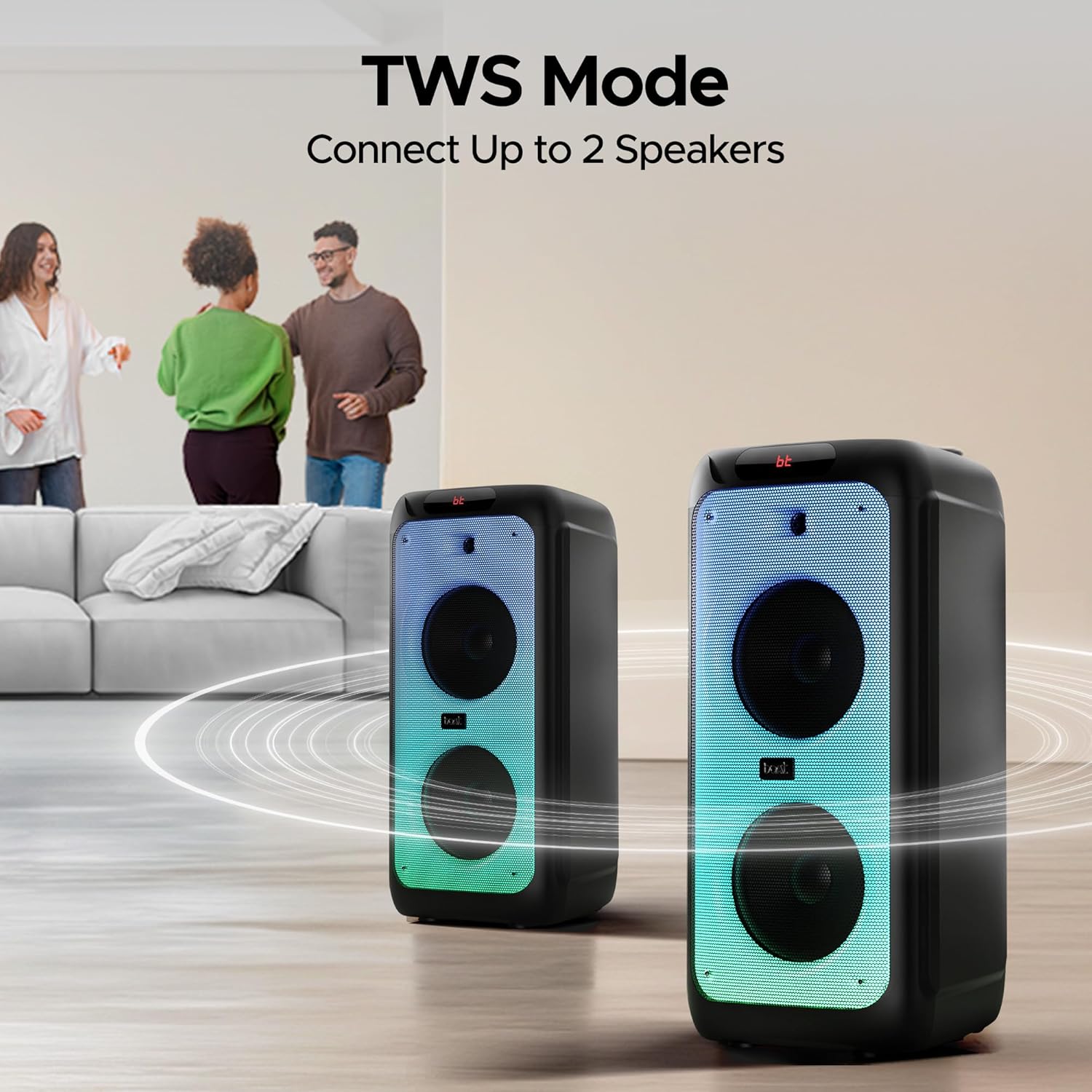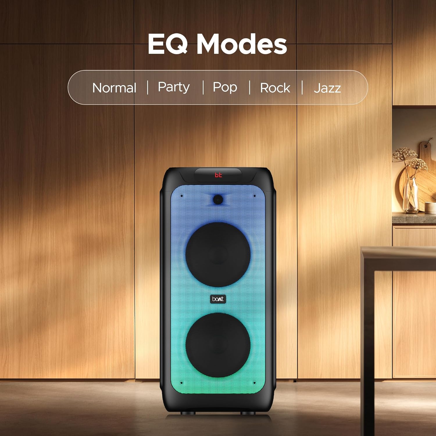 boAt Partypal 390/400 Speaker w/ 160 W Signature Sound, Karaoke with 2 Microphone Input Ports, Up to 6 hrs Playtime, EQ Modes, TWS Mode, Bluetooth v5.3, AUX & USB Type-C Port, Space Black
