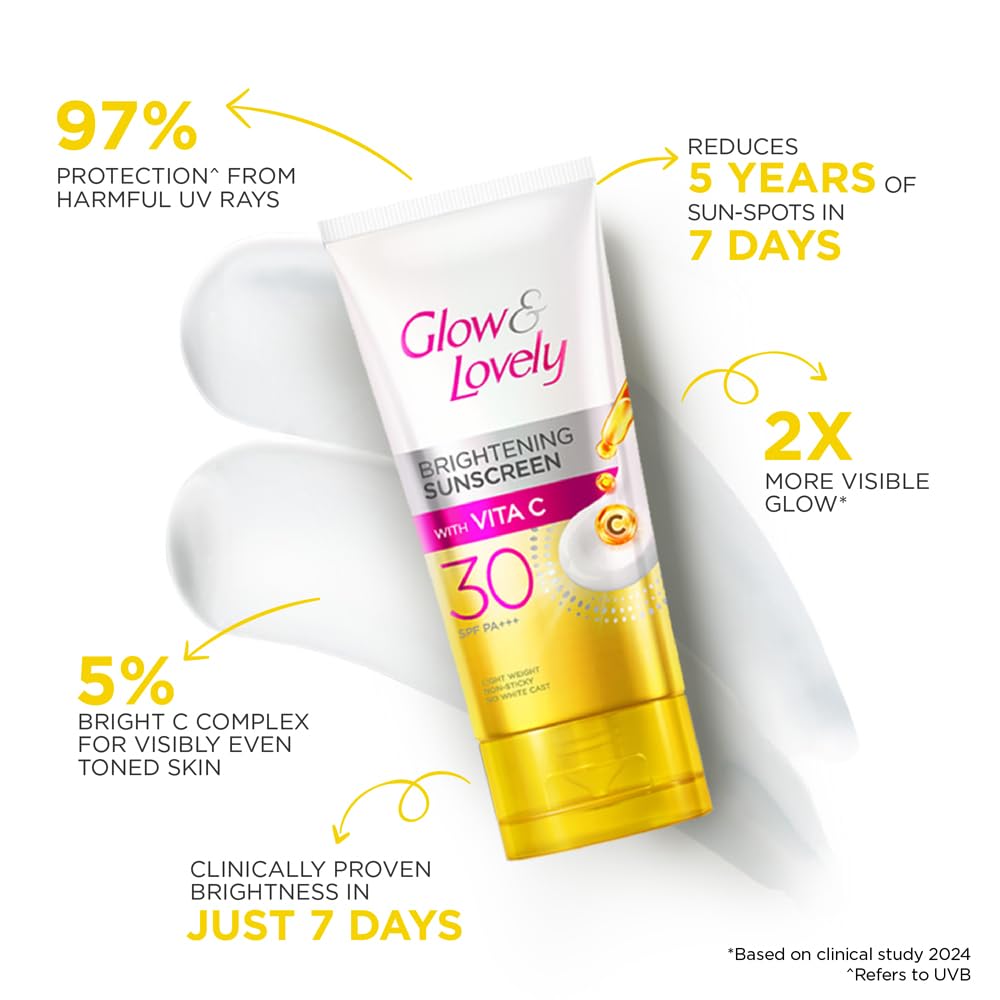 Glow and lovely Brightening Sunscreen SPF 30 | Vita C | PA ++++ |Light weight | Non sticky | No White Cast | 50g