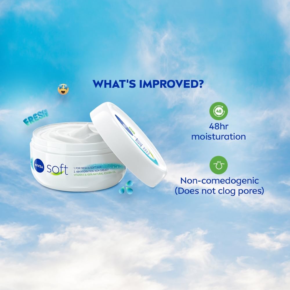 NIVEA Soft Light Moisturizer, 300 ml | Instant Hydration with Vitamin E & Jojoba Oil | Non-Greasy Cream for Face, Body and Hands | For Smooth, Healthy Skin