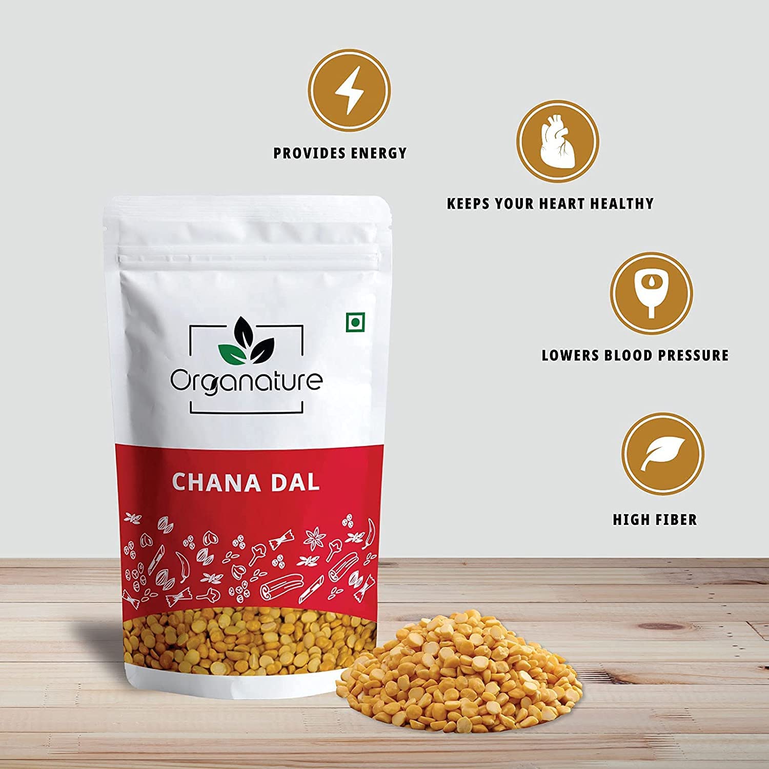Organature Organic Chana Dal | Split Chickpeas | Dry Chana Dal Pulses – Pack Of (850 Grams)