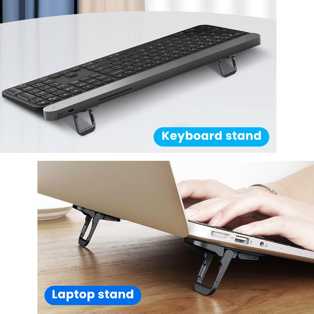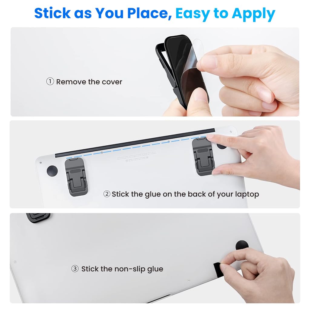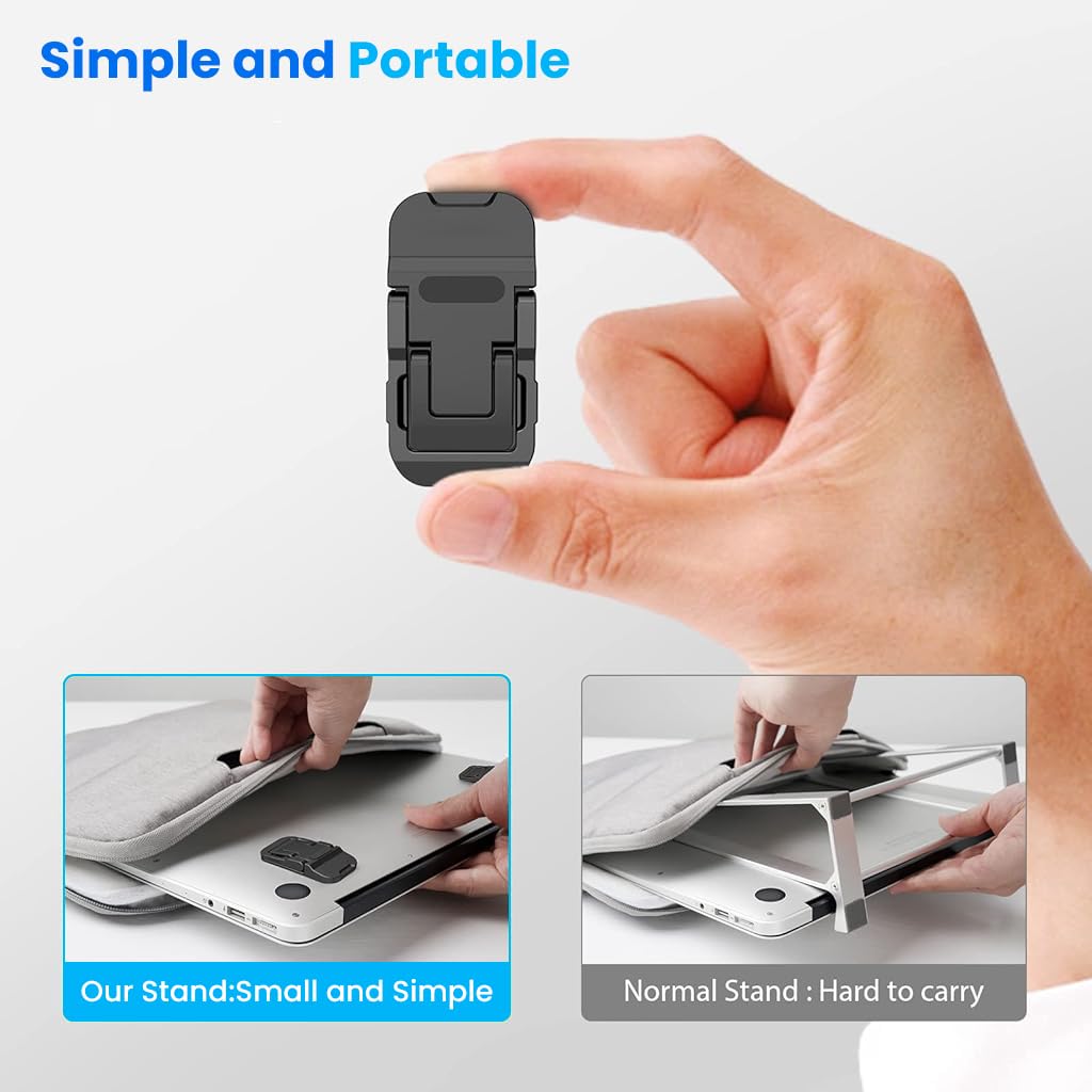 ZORBES® Portable Invisible Laptop Riser Stand, 2 Mini Self-Adhesive Alloy Metal Folding Desk Stand, Lightweight Laptop Desk Feet for MacBook, Lenovo, HP, Dell, Laptops & Tablets, 2pc (Black)